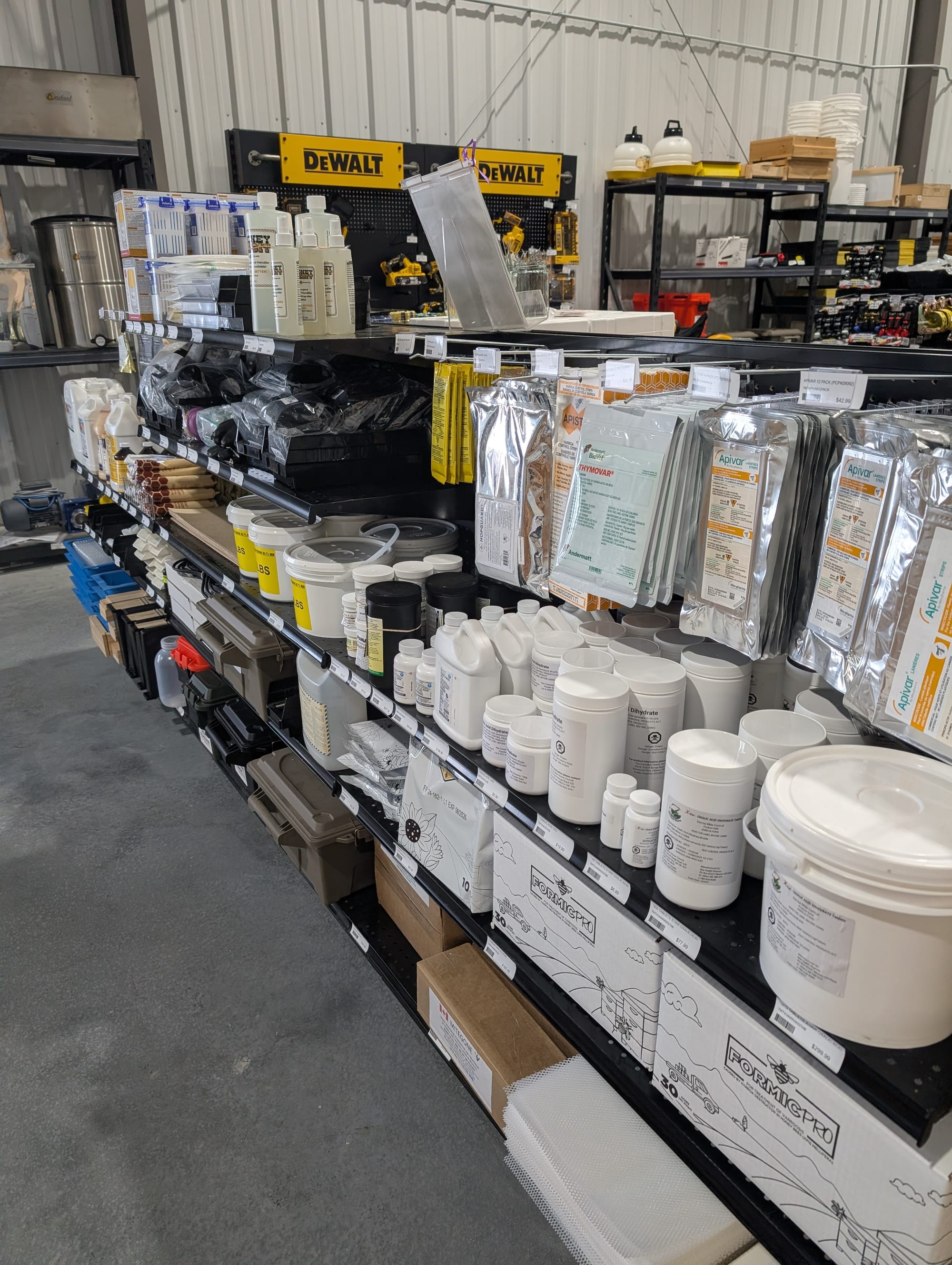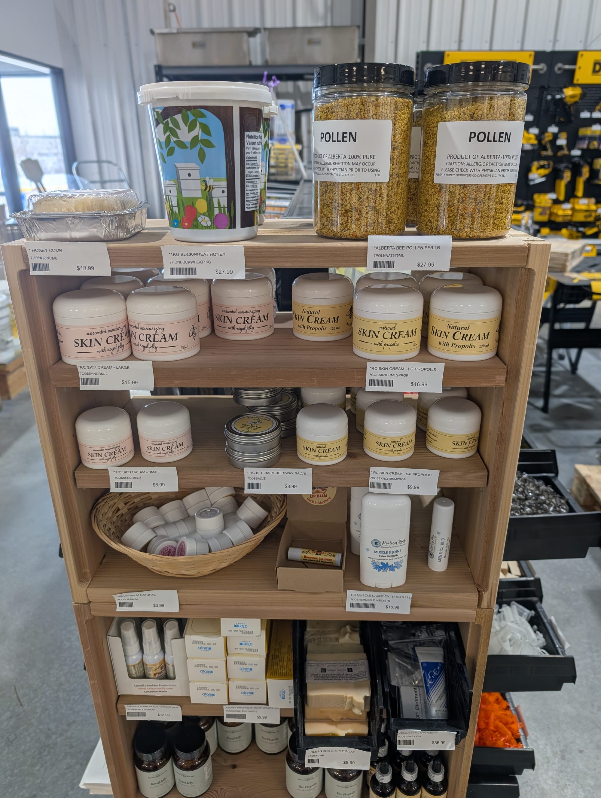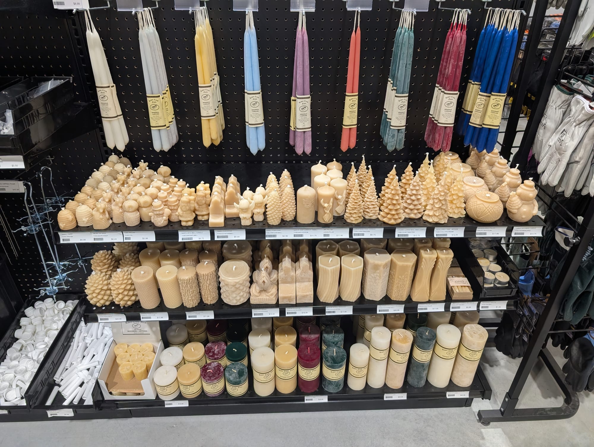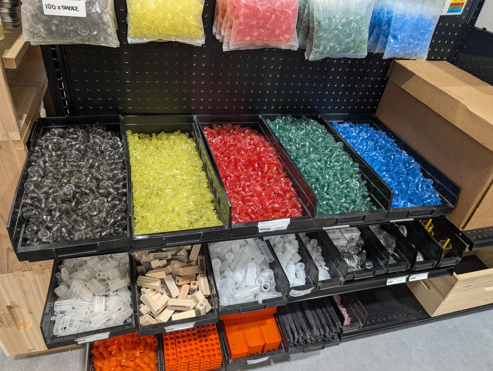 Huge selection of everything you would need to become a beekeeper, and then also lots of locally made bee items like candles, beeswax sheets, lip balm and flavored honey sticks etc.