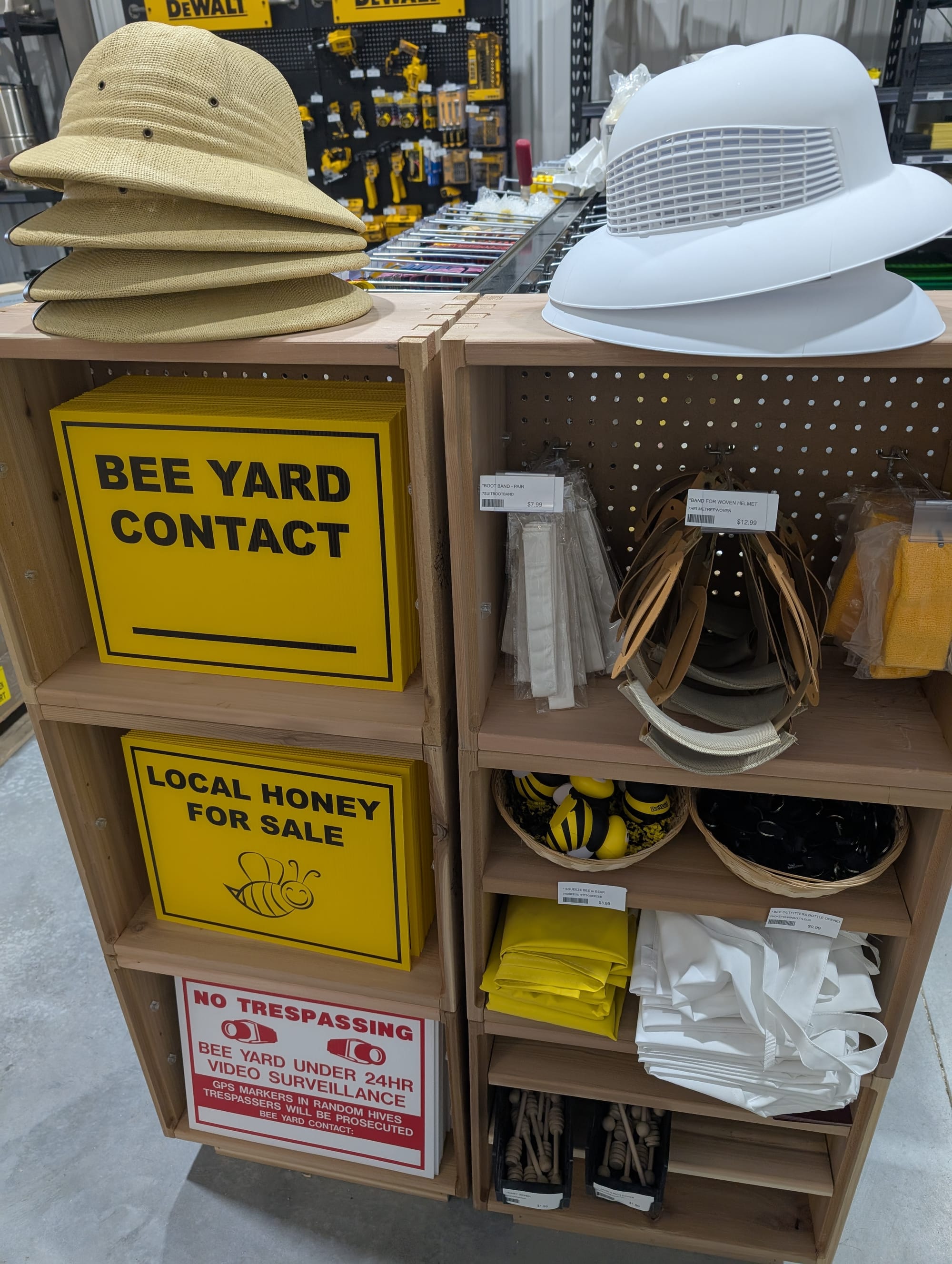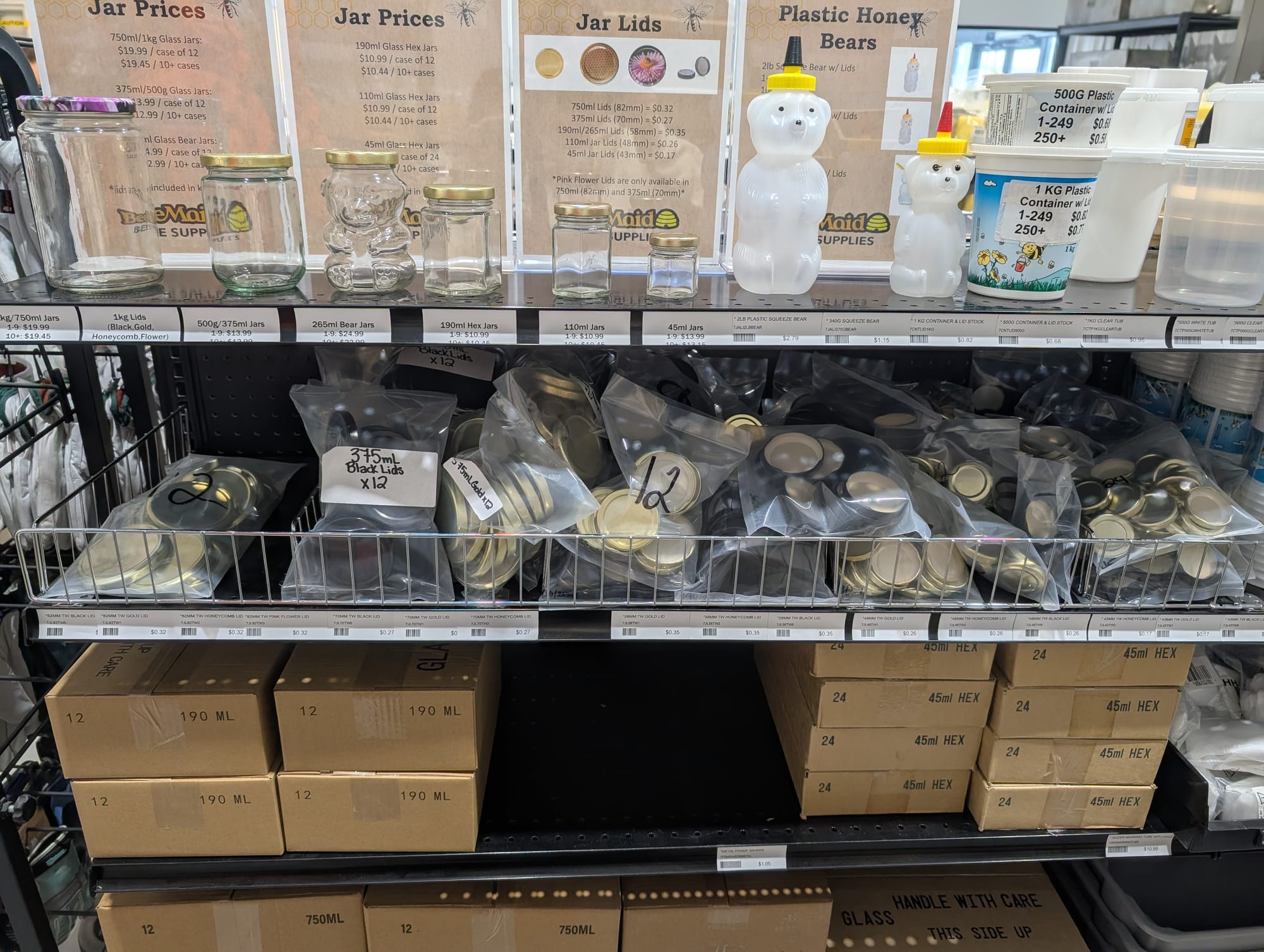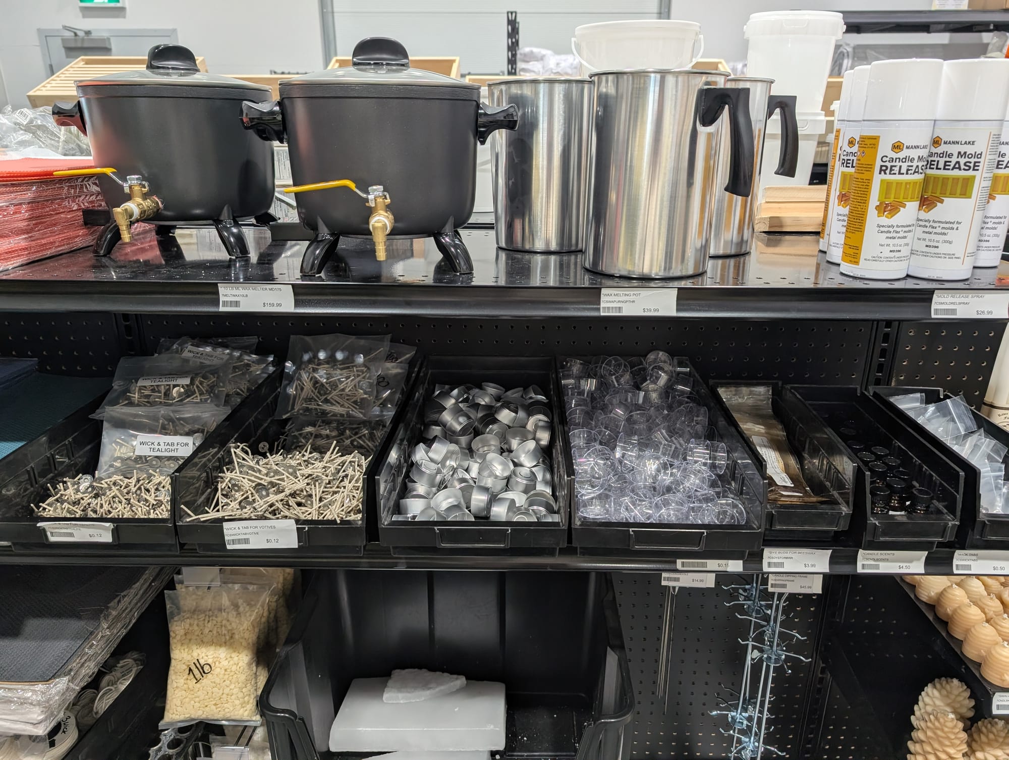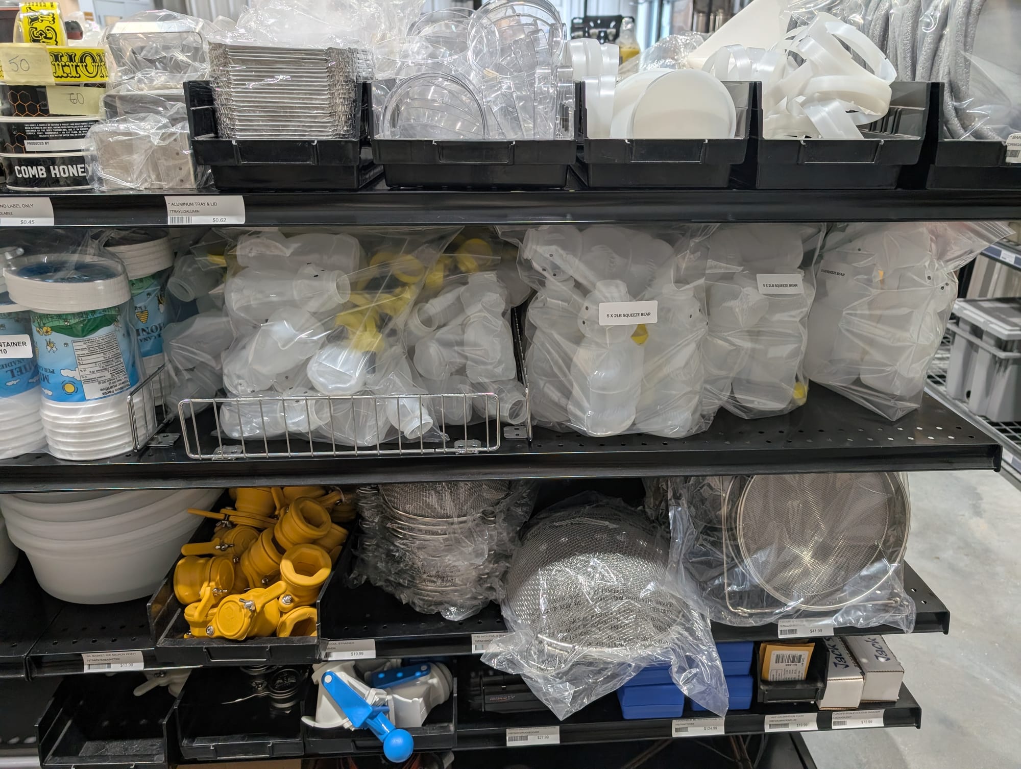 Huge selection of everything you would need to become a beekeeper, and then also lots of locally made bee items like candles, beeswax sheets, lip balm and flavored honey sticks etc.