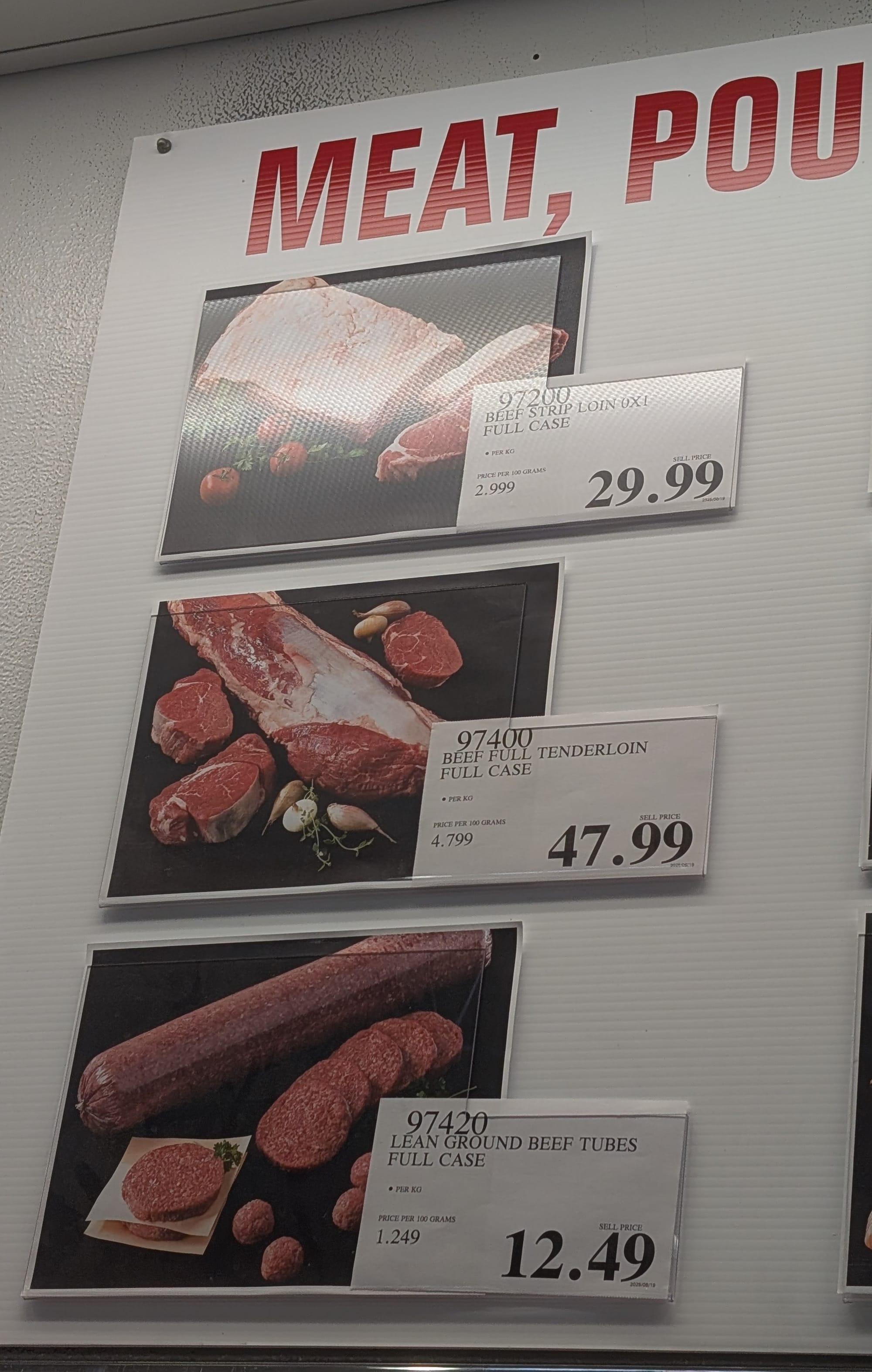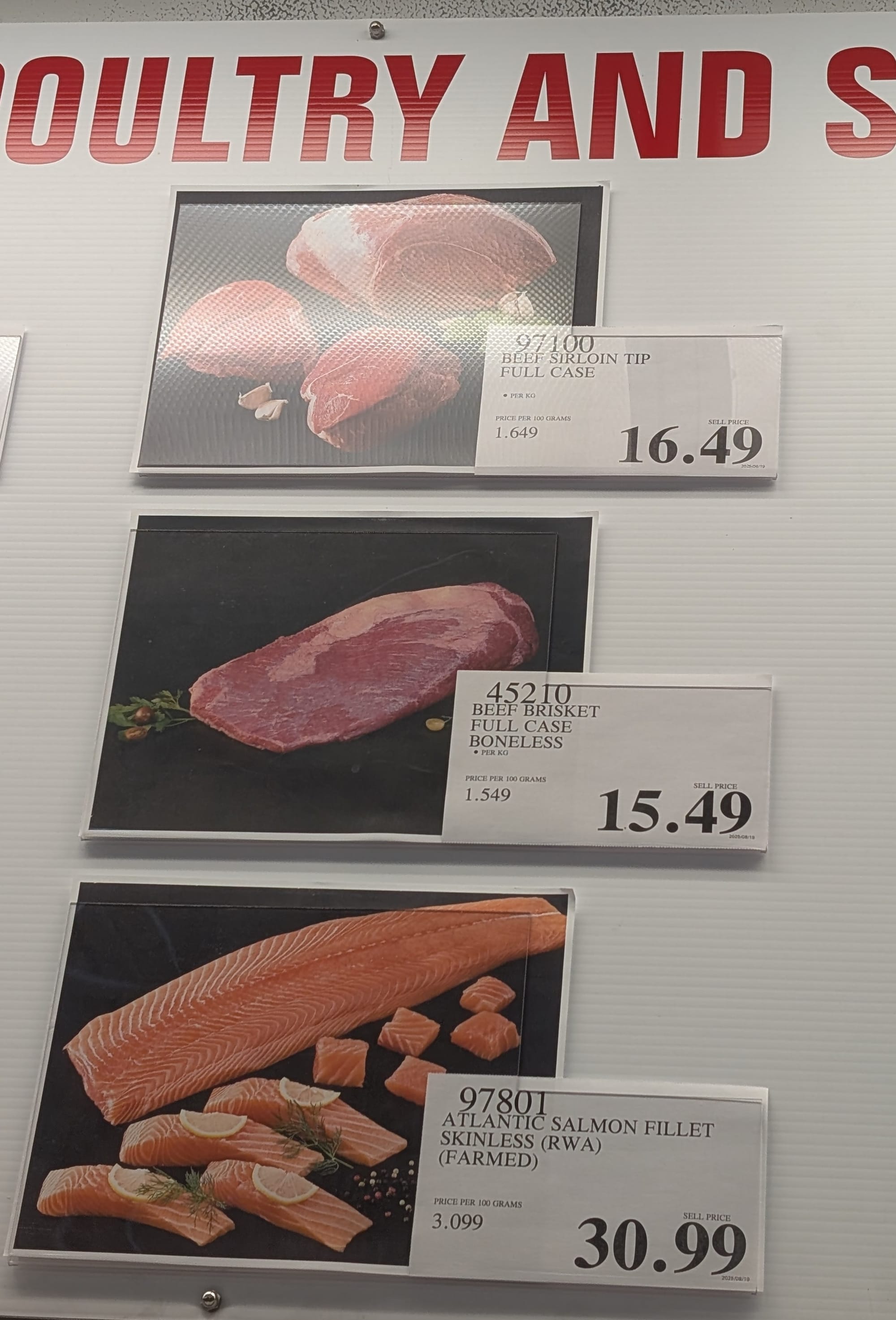 These pictures are as of today at the kenaston location in Winnipeg. You can do this at all locations, but the availability and pricing will be very different. For the meat it can fluctuate a lot, so make sure to check on the day that you're there. These are just for example as of today.