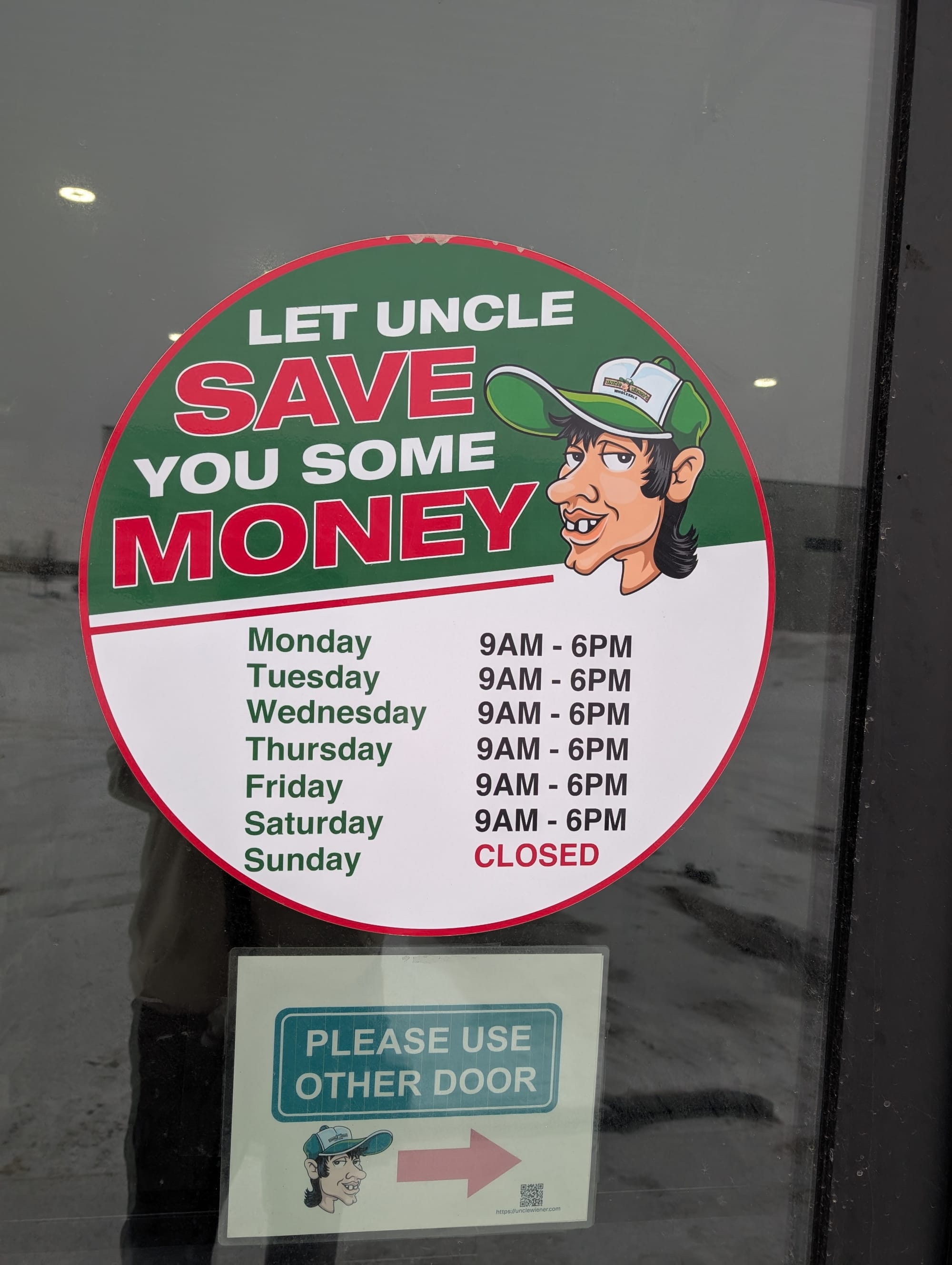 Uncle Wieners in Winnipeg is located at 91 Farmers Row - It's a big Warehouse full of a huge variety of stuff.